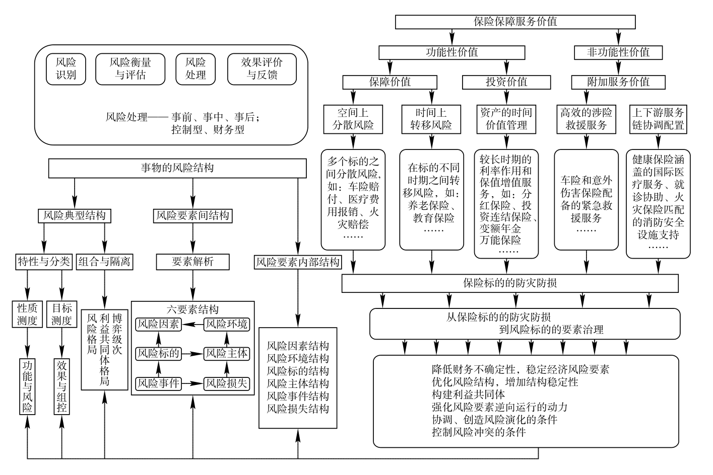 面向“十四五”,以习近平新时代中国特色社会主义思想为统领,结合中国独特的历史、文化、国情,立足中国共产党领导中国革命、建设、改革的伟大历程和辉煌成就,认真总结新中国成立以来、改革开放以来特别是党的十八大以来中国特色社会主义取得的实践经验,着眼于用中国特色社会主义市场经济理论引领贯穿保险学知识体系,通过跨领域、跨学科、综合性研究和协同攻关,形成说明中国风险观和保险学的“说明书”、解释中国风险观与保险学的“解释学”、给世界提供研究中国风险观和保险学的基础知识和基本方法的“方法论”(如图1-1所示),具有重要的现实意义和深远的历史意义。