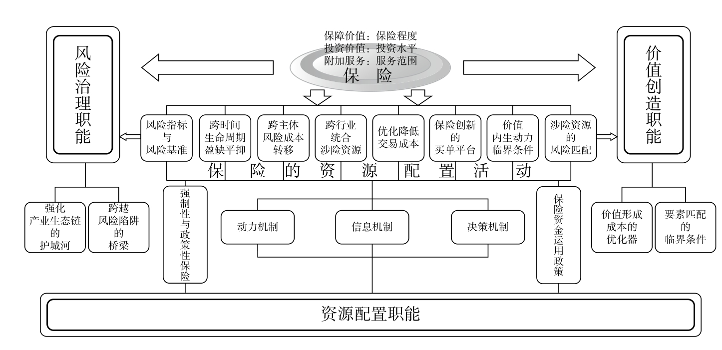 “十四五”时期,保险业要重新认识保险,顺应保险学科发展趋势,推动保险理论与实践的创新,促进“保险保障、资金融通和社会管理”传统功能向保险“风险治理、价值创造和资源配置”的现代功能转变(如图1-2所示),推进保险业的变革与发展,使保险成为经济增长的“助推器”与社会发展的“稳定器”,成为国家经济社会高质量、强韧性、可持续发展的重要金融工具。