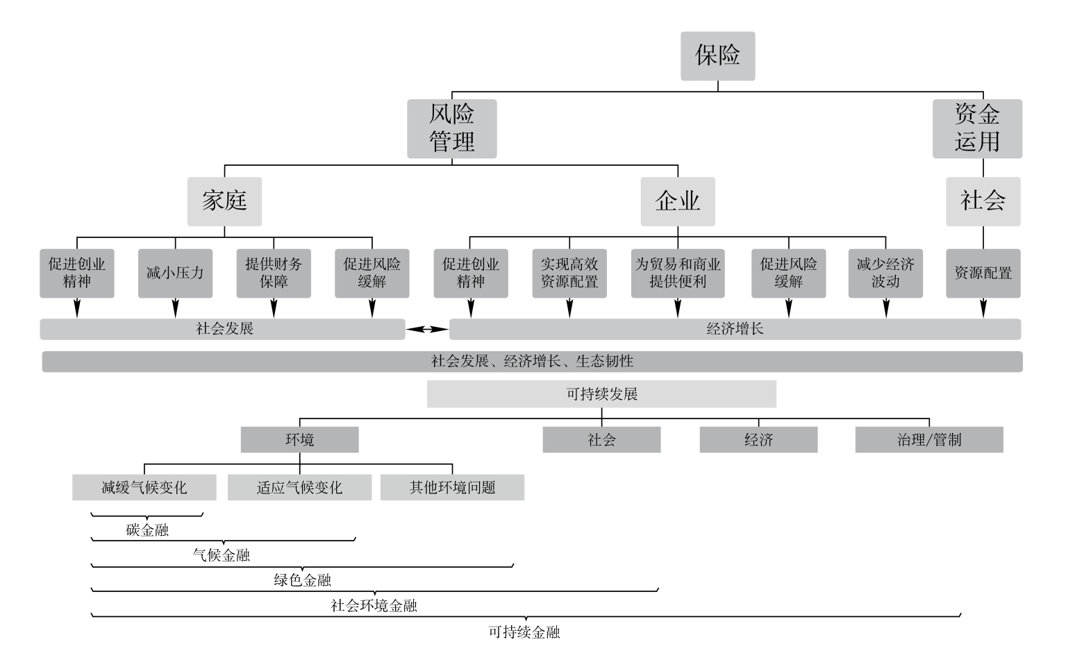 (2)从横向上看,保险课程的思政内容主要体现在三个层面:一是可持续保险(sustainable insurance)问题,将保险导入人类可持续发展的重要领域,如环境污染责任保险、巨灾保险、突发公共卫生事件公共责任保险、普惠保险等;二是负责任投资(responsible investment)问题,引导保险资金投向可持续发展领域,同时要求运用保险资金时要将环境、社会和治理(Environmental,Social and Governance, ESG)纳入投资决策;三是可持续金融(sustainable finance)问题,将保险和可持续发展结合在一起,旨在将保险导入人类可持续发展的重要领域,如中国的乡村振兴,“健康中国2030”,多层次养老保障体系,碳达峰、碳中和“3060”目标,联合国可持续发展目标(Sustainable Development Goals,SDGs)等。