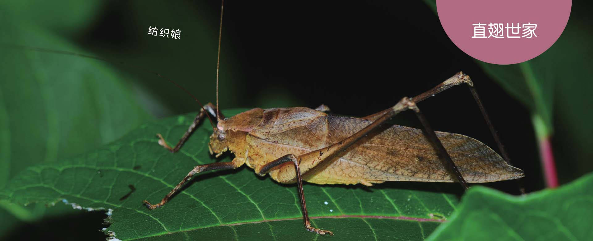 和蟋蟀关系最近的“植栖派”,当属螽斯总科。螽斯这个名字给人的感觉比较陌生,但实际上常见的鸣虫蝈蝈儿和纺织娘都属于螽斯总科。蝈蝈儿和纺织娘体型很大,除了它们之外,还有很多体型稍小一些的螽斯。和蟋蟀不同,它们常常在草丛、灌木丛乃至树上活动,体色大多为绿色,身体侧扁,有些像叶子。从蝈蝈儿和纺织娘我们不难推断,螽斯往往也都是歌唱高手。从外表上看,螽斯像是在草上吃叶子的素食者,不过事实上很多螽斯是杂食性的,这一点和同属“植栖派”的蝗虫不同。