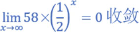 当函数的 自变量 极限趋近于一个值 ,若函数最后所得到的结果趋近于一个值,我们称此为 收敛(Convergence) 。请参考 2-1 节的金门高粱酒的稀释实例,当 稀释次数 趋近 无穷大∞ 时,可以得到此函数的结果是趋近于0,这时我们称此函数结果是 收敛