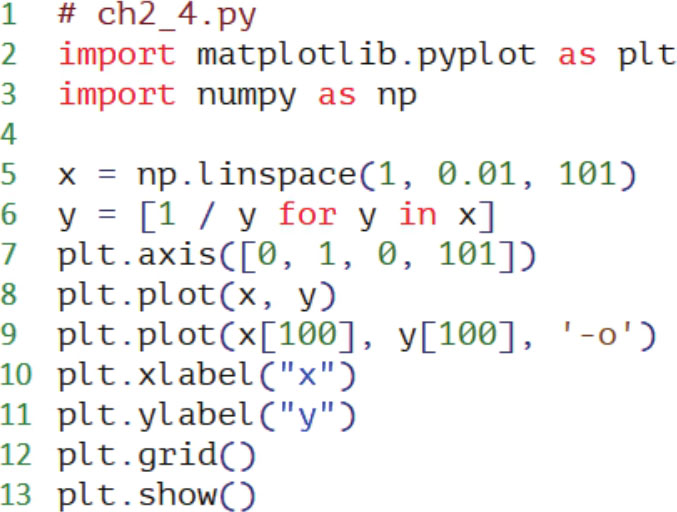 程序实例ch2_4.py: 用此节实例设计 x 值从1.0至0.01的结果。