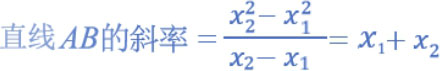 由上述公式验算,我们可以得到当曲线是 y = x 2 时,直线 AB 的斜率相当于是 x 1 + x 2
