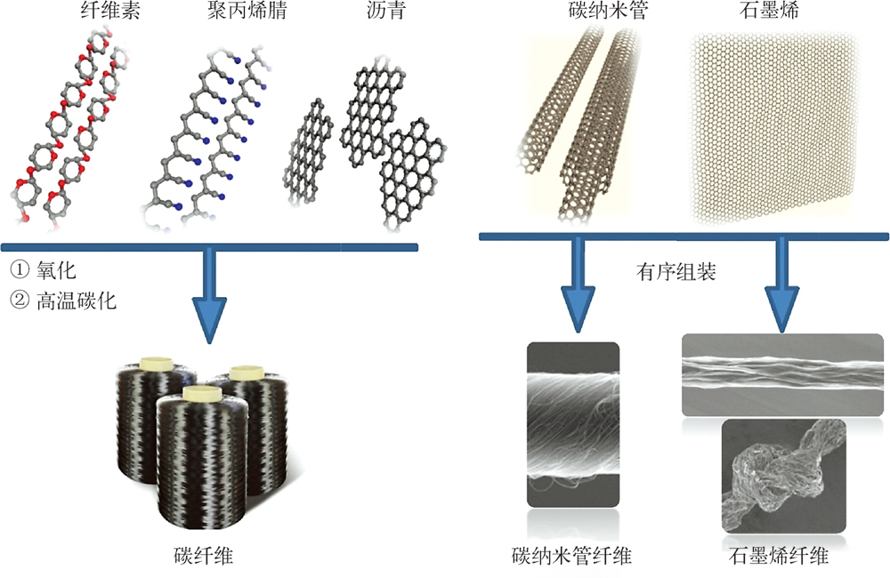 图3-1 传统碳纤维与新型碳质纤维的结构单元示意图 [4]