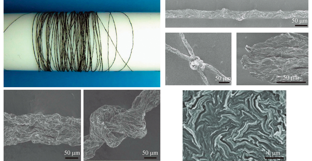 在所有石墨烯纤维的制备方法中,液晶湿法纺丝最有利于批量化的制备,发展潜力大。在液晶湿法纺丝中,纤维由液相有序到固相有序的凝固过程仍不清晰,纤维内部石墨烯片的排列取向未加控制,这些问题仍困扰着石墨烯纤维的可控制备及性能提升。因此,未来还需要投入更大的精力,更快地推进石墨烯纤维的结构功能一体化。
