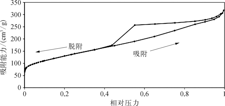 图3-24 水合肼还原法制备的石墨烯的氮气吸附-脱附等温线