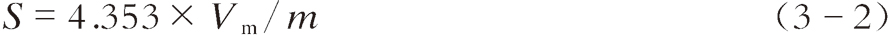 比表面积测试的主要装置一般包括静态体积法气体吸附仪、试料管、气体脱附装置等。一般的测试步骤如下:首先将样品于低温烘箱中干燥一段时间至恒重,称取不少于30mg的样品装入试料管中,在一定温度下真空脱气以去除样品表面物理吸附的物质,冷却后称量并计算所加样品的质量;然后将脱气后试料管放入比表面积测试冷阱中,连接系统,按照比表面积测试设备的操作规程测试,完成后根据设备测试结果记录相关测试数据。样品比表面积的计算公式如下: