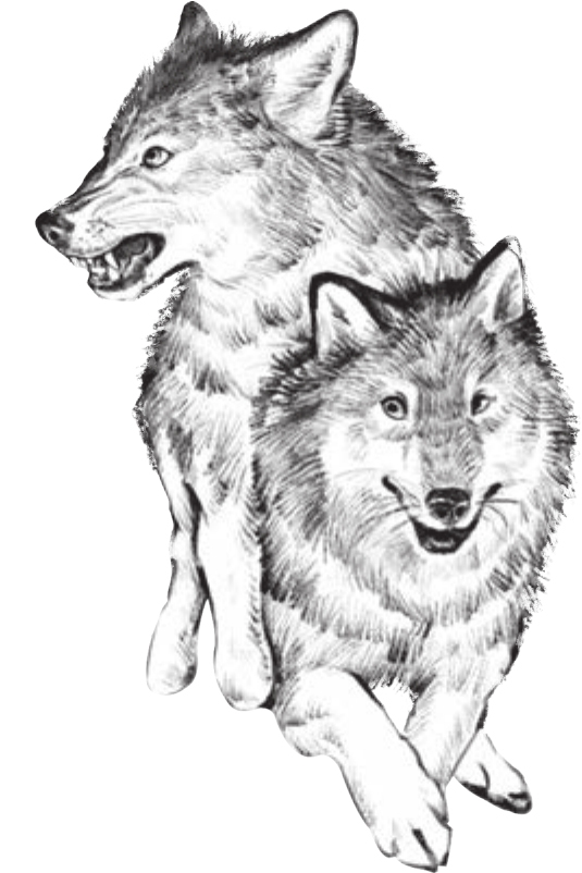 狼用三条腿行走的天赋,既非老天爷的特殊照顾,也不是造物主的慷慨恩赐,而是在严酷的丛林生活的压力下进化而来的一种生存技巧。狼是凶猛的食肉兽,但和狮、虎、熊、豹相比,狼的体格就显得太小了。羚羊、马鹿这样的食草动物面对孟加拉虎或雪豹时会闻风丧胆、魂飞魄散,但遭遇到狼,特别是遭遇到离群的孤狼时,虽然也会害怕,也会惊恐不安,却不肯放弃死里求生的幻想,即使狼牙狼爪无情地落到身上,也困兽犹斗。老虎咬住猎物的后颈椎,强壮的虎腭用力一拧就可以在瞬间把猎物弄得窒息昏死,而狼则要麻烦得多。狼牙虽然尖利,但狼腭不够孔武有力,无法一下子就把猎物的颈椎拧断,所以免不了要有一场殊死搏斗。最终当然是狼获胜,却不能排除在搏杀过程中狼自己也受到某种程度伤害的可能性。被咬断一只脚,就是狼最常遭遇的情况。犬科动物的爪子不像猫科动物那样有一副锐利如尖刀的趾甲,狼脚又细,穷途末路的猎物在情急之下,极有可能咬住狼脚,即使是只啃食浆果和草莓的松鼠,在这种时候鼠牙也会变得锋利起来,能活脱脱把含在嘴里的狼脚咬下来。
