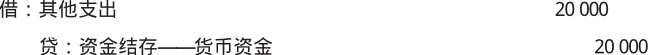 【例1-6】2×19年8月30日,某事业单位向希望工程捐赠现金20 000元,其会计分录如下。