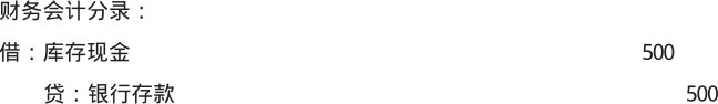 【例1-1】某单位于2×19年12月20日从甲银行账户提取现金500元作为备用金,其会计分录如下。