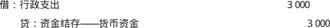 【例1-12】某行政单位以银行转账方式购置文件柜、纸、笔、书桌等办公用品,共计3 000元,应做如下会计分录。