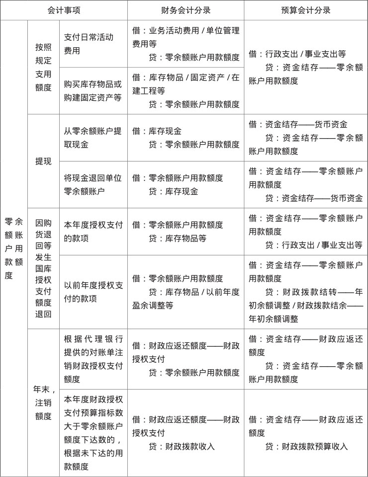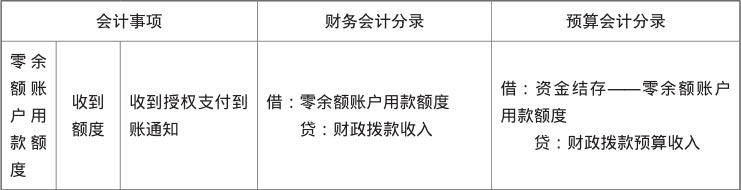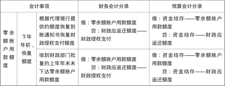 零余额账户用款额度的会计分录如表1-8所示。