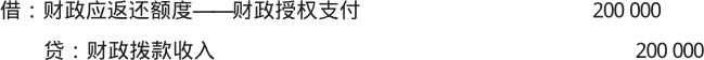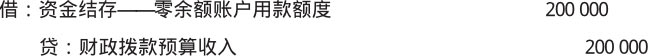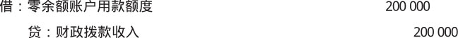 【例1-17】某行政单位收到财政授权支付额度到账通知书,收到财政拨款200 000元,应做如下会计分录。