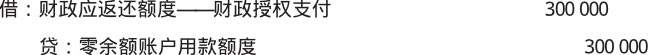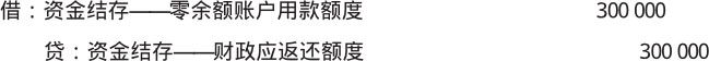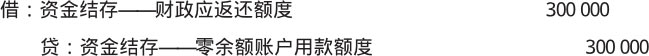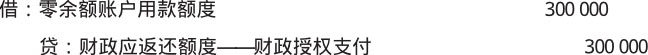 【例1-23】沿用【例1-22】。下年年初,该单位收到代理银行提供的额度恢复到账通知书,恢复额度为300 000元,应做如下会计分录。