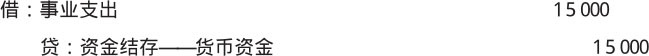 【例1-25】某事业单位用银行汇票购买一批金额为15 000元的存货,其会计分录如下。