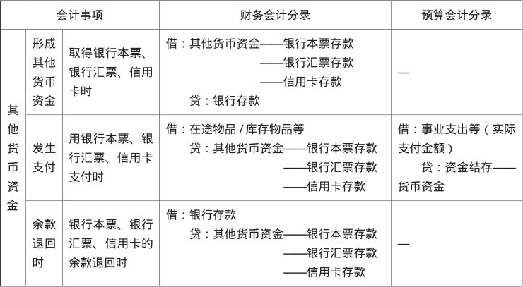 其他货币资金的会计分录如表1-9所示。