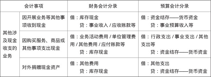 表1-3 其他涉及现金收支的业务的会计分录