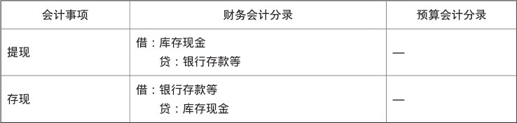 表1-1 提现和存现的会计分录