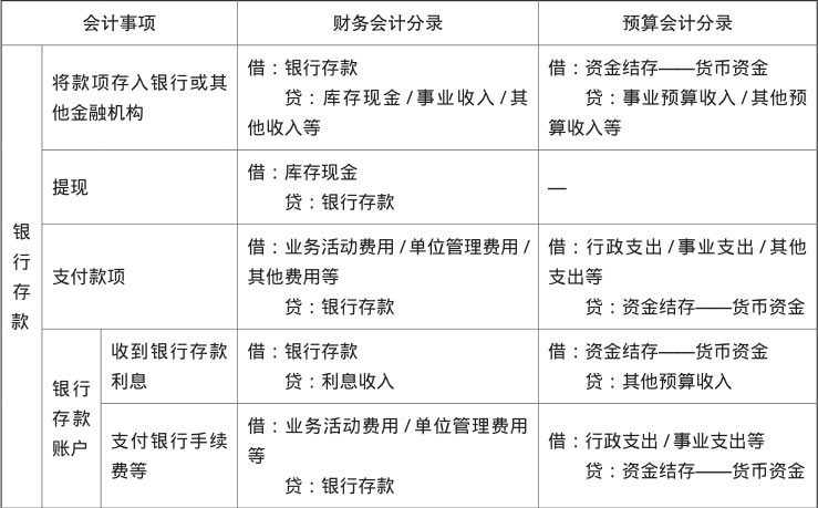 银行存款的会计分录如表1-7所示。