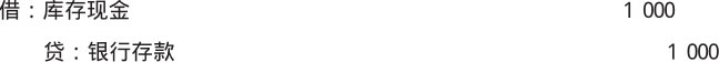 【例1-11】某单位于2×19年1月1日从甲银行账户提取现金1 000元作为备用金,其会计分录如下。