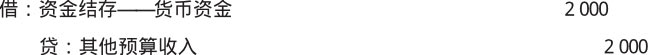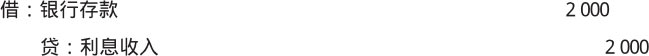 【例1-13】某行政单位期末收到银行存款利息共计2 000元,应做如下会计分录。