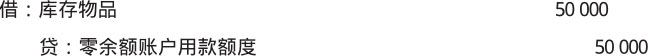 【例1-18】某行政单位使用零余额账户用款额度50 000元购进一批存货,应做如下会计分录。