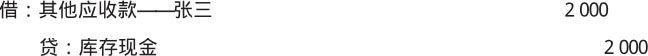 【例1-3】某事业单位内部职工张三2×19年2月10日借出2 000元现金作为差旅费,2×19年3月10日最终报销1 800元,归还200元,会计分录如下。