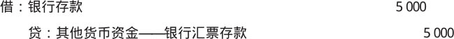 【例1-26】2×19年年末,银行将某单位银行汇票的余额5 000元退回,该业务的会计分录如下。
