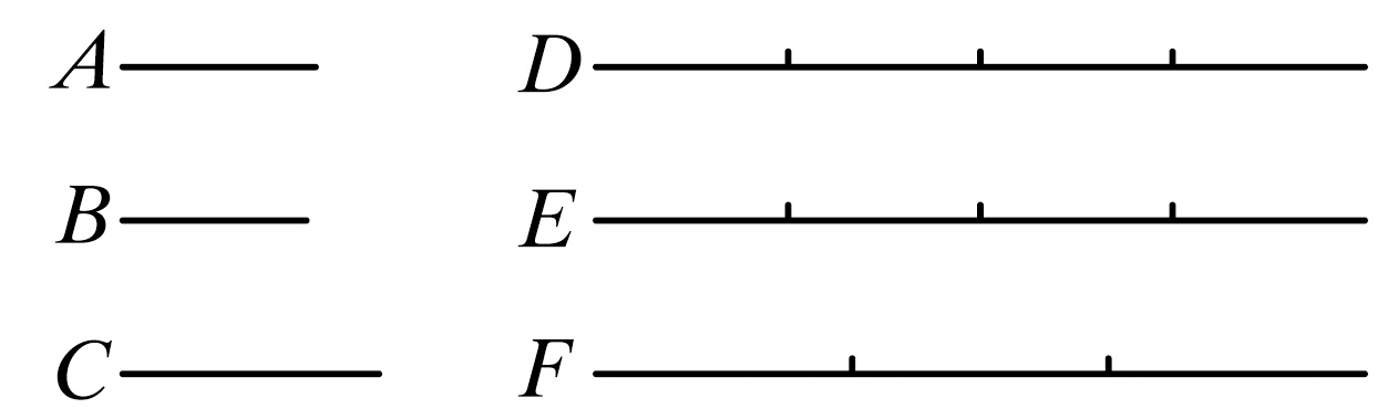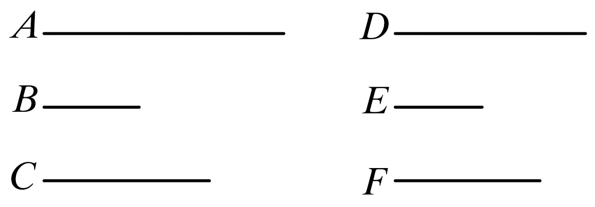 事实上,因为AB是C的倍量,DE是F的倍量,其倍数相等。故在AB中存在多少个等于C的量,则在DE中也存在同样多少个等于F的量。