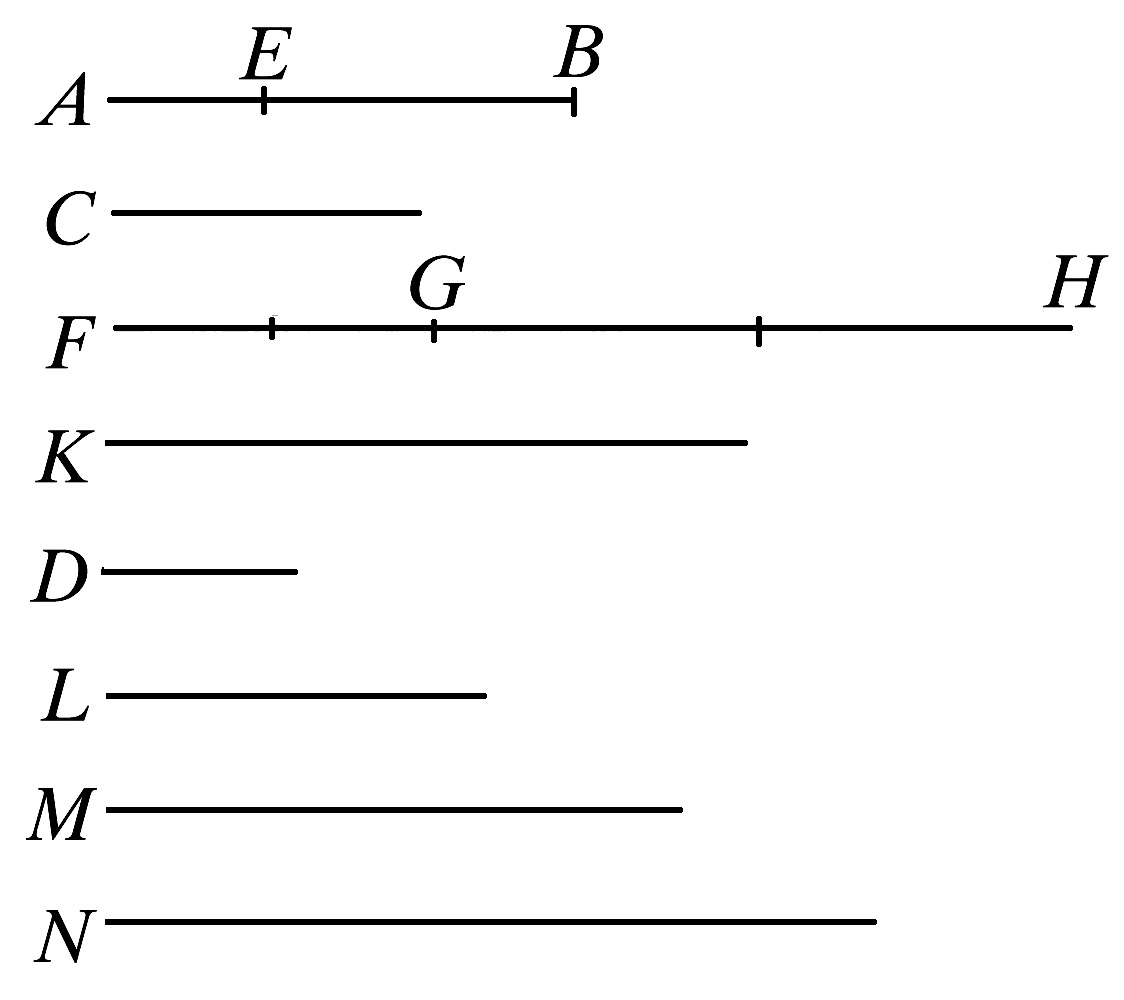 在公布这个命题时,海伯格(Heiberg)曾用到首末二字,实际上,它与首末比的定义(17)没有关系。但是,从下述可以看出,此处使用的表达方式与首末比定义中的表达方式是很类似的,这个命题断言,如果