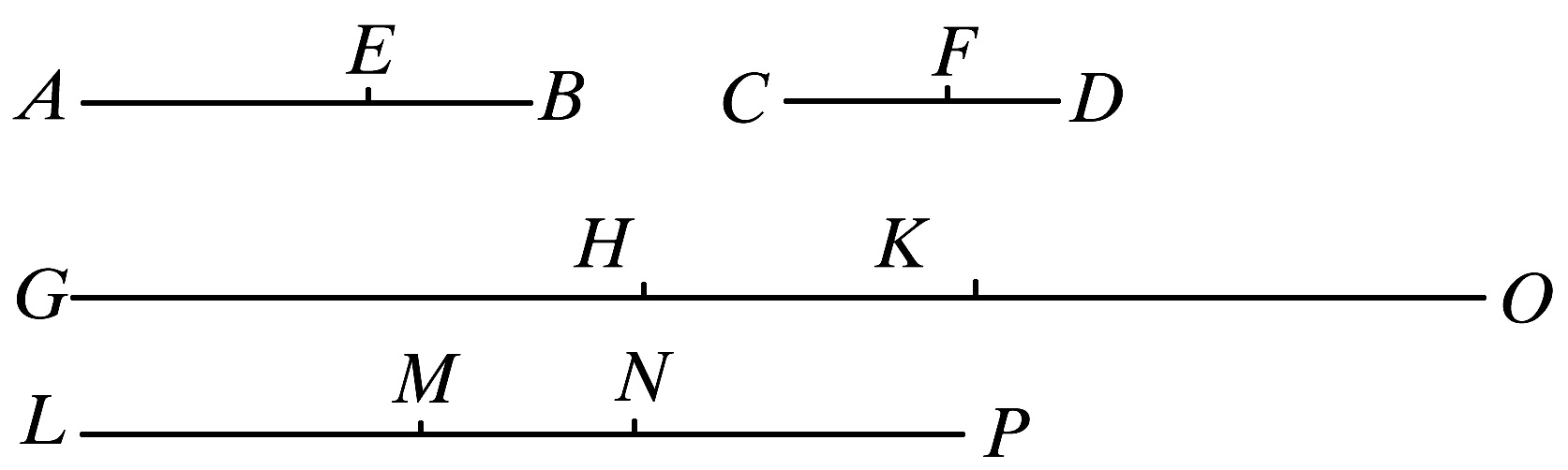 事实上,令E、F的同倍量为K、L;另外,G、H的同倍量为M、N.