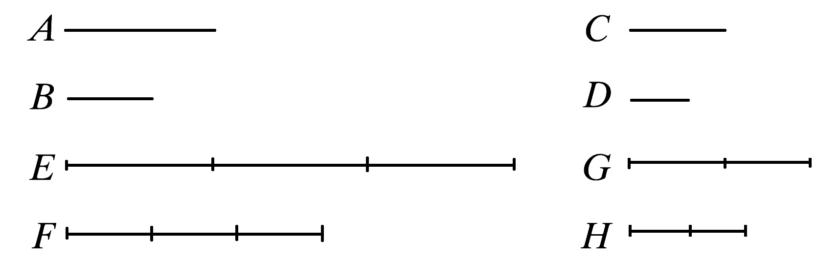 取A、C的等倍量为E、F;又取B、D的等倍量为G、H.