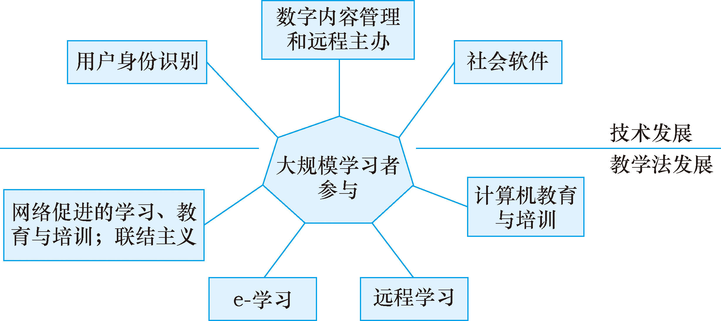 需要关注的是,随着MOOC实践不断发展,MOOC本身也为开放在线学习教学法与教育技术进步提供了广阔的舞台、发展的动力,催生出网络学习、关联主义(connectivism)、建构主义(constructivism)等教学法新发展,以及在线学习(E-learning)、开放远程学习(open distance learning)、计算机支持合作学习(computer-supported collaborative learning,简称CSCL)、计算机教育培训(computer-based education and training,简称CBT),并深入推进相关技术创新、理念创新与学习革命。在技术论者看来,与MOOC相关的新技术问题随着MOOC发展而被解决,MOOC技术足以满足实践需要。