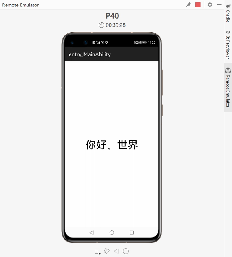 点击模拟器返回按钮,返回“你好,世界”界面,效果如图5-29所示。