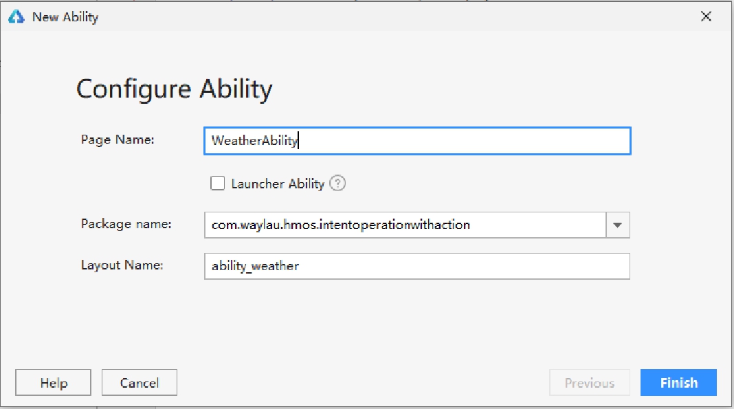 通过DevEco Studio创建一个关于天气信息的Page——WeatherAbility,如图5-26所示。