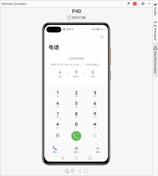 点击“你好,世界”本文,触发点击事件。此时,界面切换到了系统应用拨号盘,如图5-31所示。