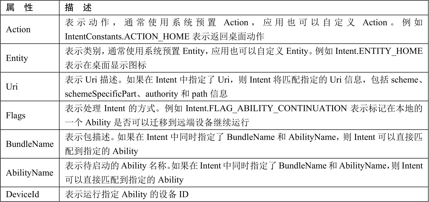 注:Intent设置属性时,必须先使用Operation来设置属性。如果需要新增或修改属性,则必须在设置Operation后再执行操作。