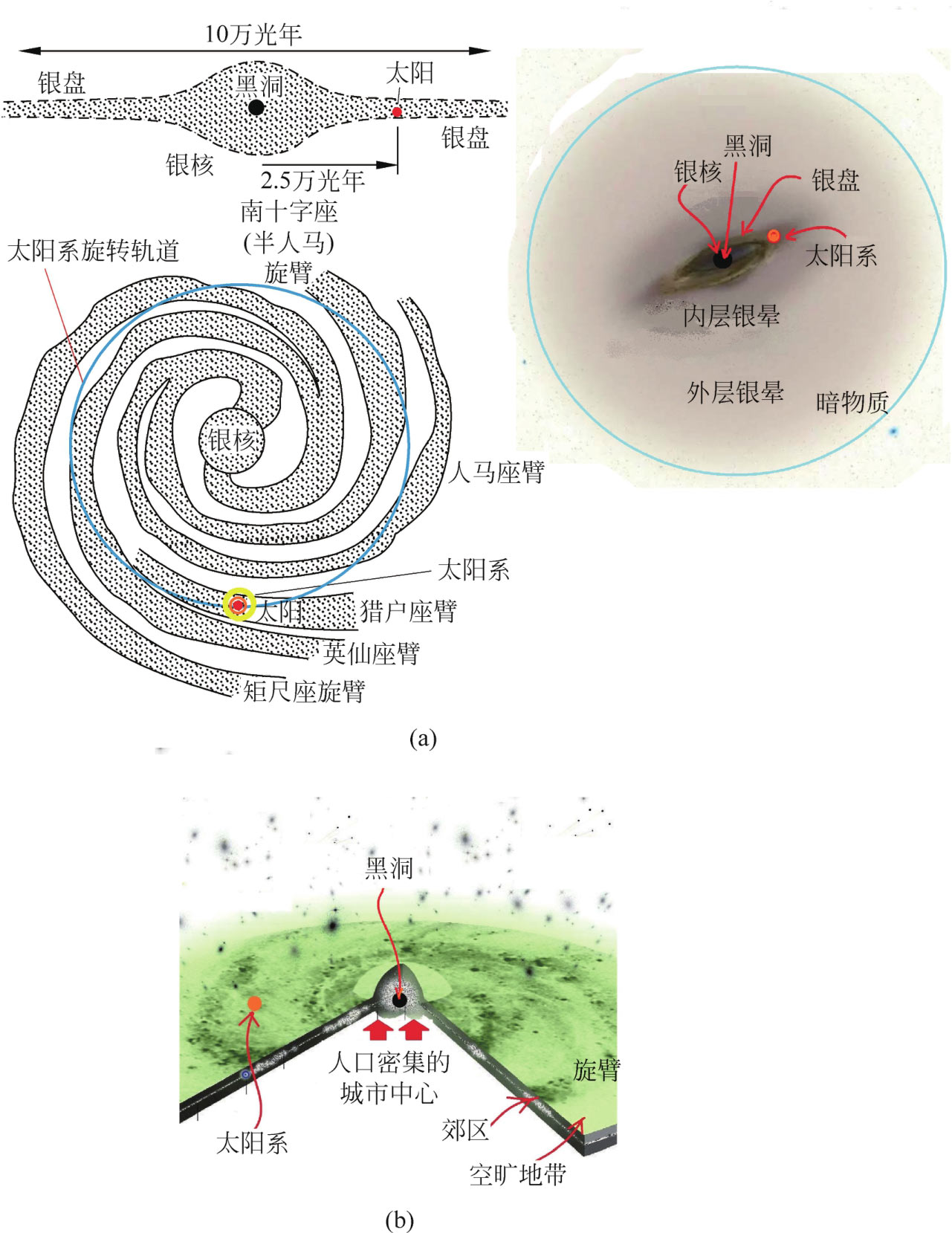 (a)银河系和太阳系;(b)银河系的星体分布