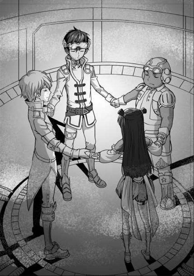 巫子涵、伊赛亚、白若曦和穆巴砂神情严肃地站在驾驶舱内,他们四人围成了一个圆圈,手交握在一起,集中全身的精力,以便承受“虫洞”技术所带来的空间扭曲力。