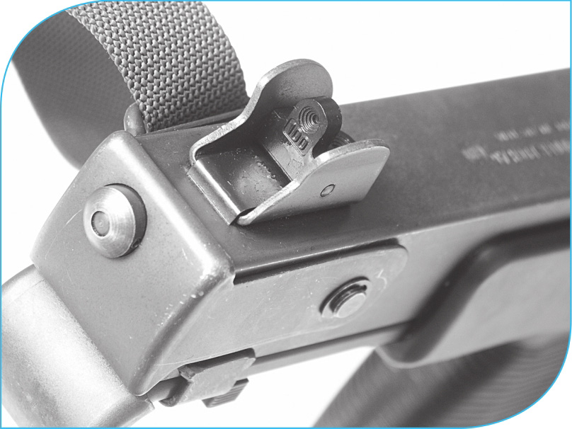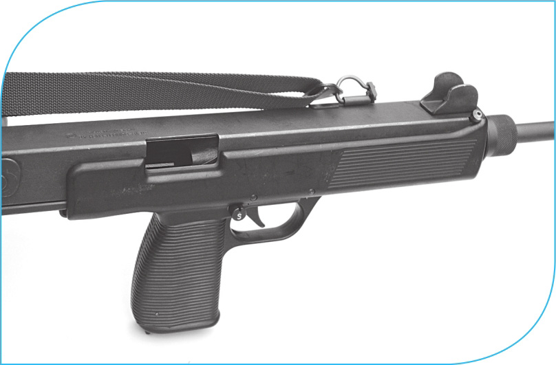 另外,MPi69/81(系列)冲锋枪的单发射击模式还可以通过调节保险按钮的位置来设定:将保险按钮置于左侧中间位置(即不推到尽头)时,扳机只能扣动到第一道火的行程,也就是在该状态下只能实现单发射击。这种设置其实存在很大弊端,主要是当射手需要打开保险、关闭射击模式时,会将保险钮向右推出,但如果此时并未到达最右侧,冲锋枪实际上并没有被保险锁定,而是进入了单发模式——相当于已经上膛待击,很可能会造成误击发的走火危险。