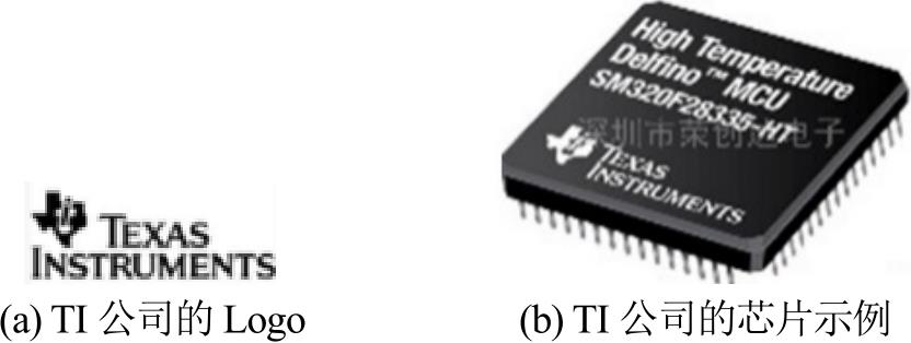 TI公司的网址是www.ti.com.cn,其生产的主要芯片包括MSP430系列单片机、数字信号处理(Digital Signal Processor,DSP)芯片(例如2000系列、5000系列和6000系列等)、集成运放芯片、74系列芯片和其他常用的芯片等。该公司的Logo和芯片示例如图1-33所示。