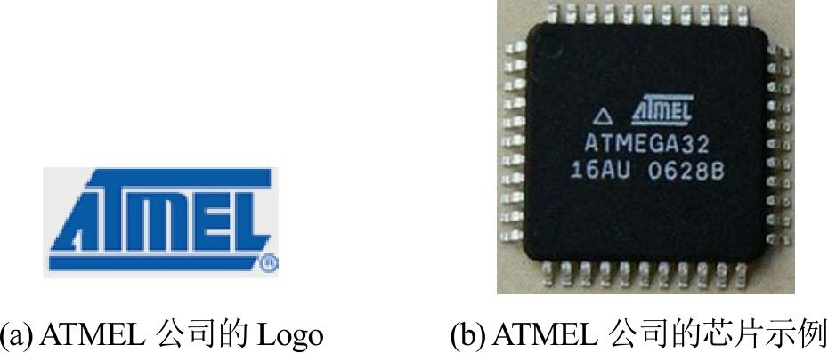 ATMEL公司的网址是www.atmel.com,它主要生产AT89C51单片机、AVR系列单片机等。该公司的Logo和芯片示例如图1-35所示。