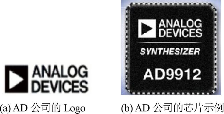 AD公司主要生产ADC芯片和DAC芯片,即模拟信号和数字信号相互转换的芯片。该公司的Logo和芯片示例如图1-36所示。
