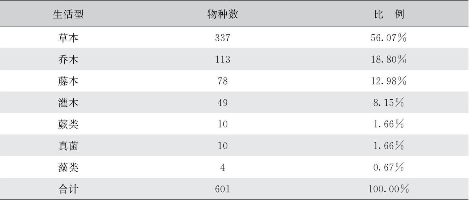表1-5 2015年版《中华人民共和国药典》收载中药资源生活型分布