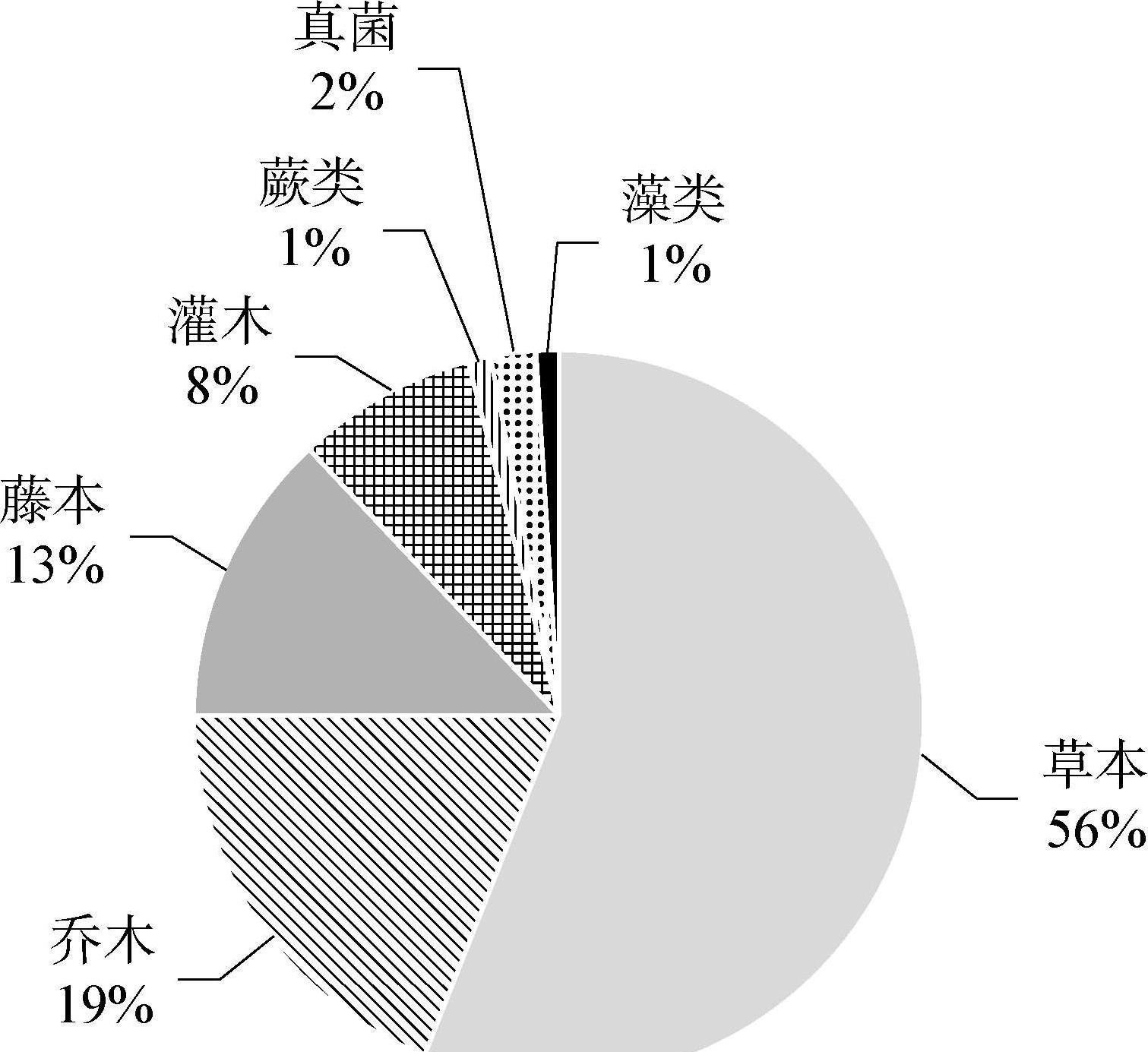 图1-6 2015年版《中华人民共和国药典》收载中药资源生活型分布