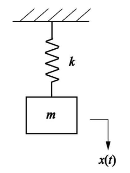 表示振动动态现象中所有能观察到的数据,都可以广义地分为确定性和随机性两类。能用准确的数学关系式描述的数据称为确定性数据,如图 2.1.1 所示的弹簧质量系统,其中弹簧刚度为