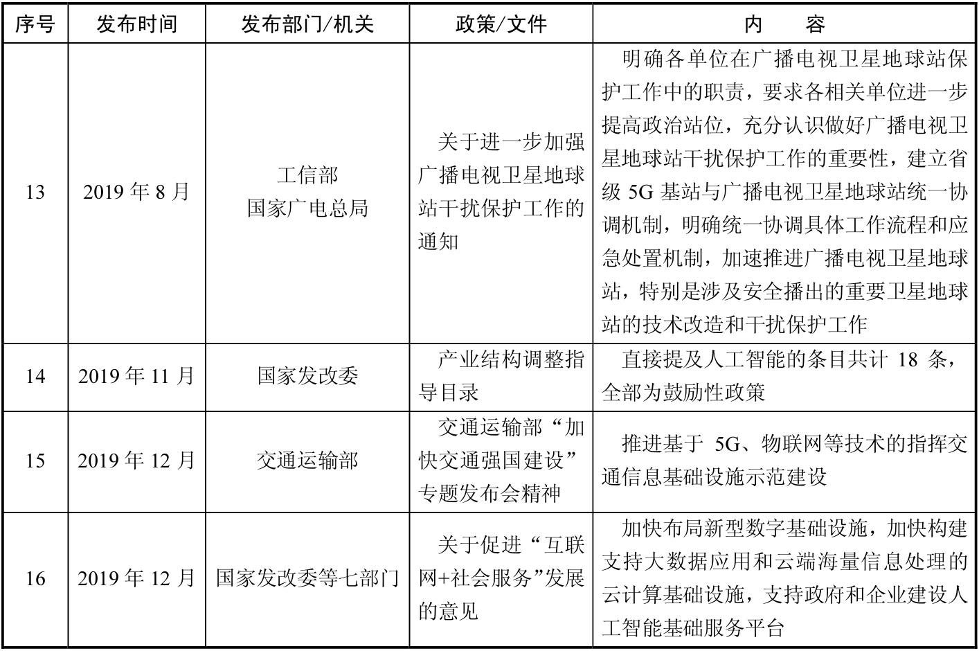 表1-1 截至2020年5月中央层面与卫星互联网融合的新技术相关的政策/文件