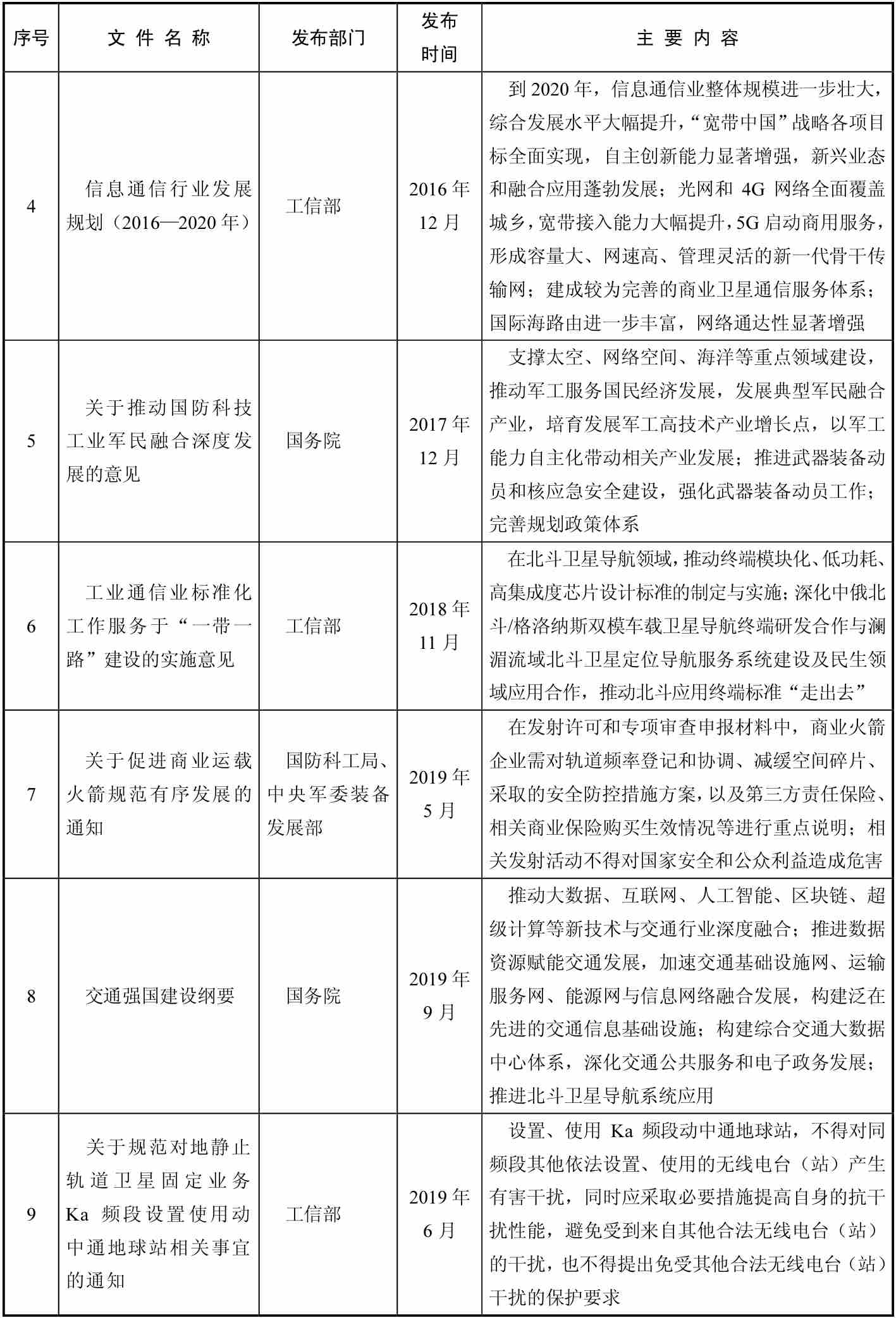表2-5 我国有代表性的卫星网络相关政策/文件