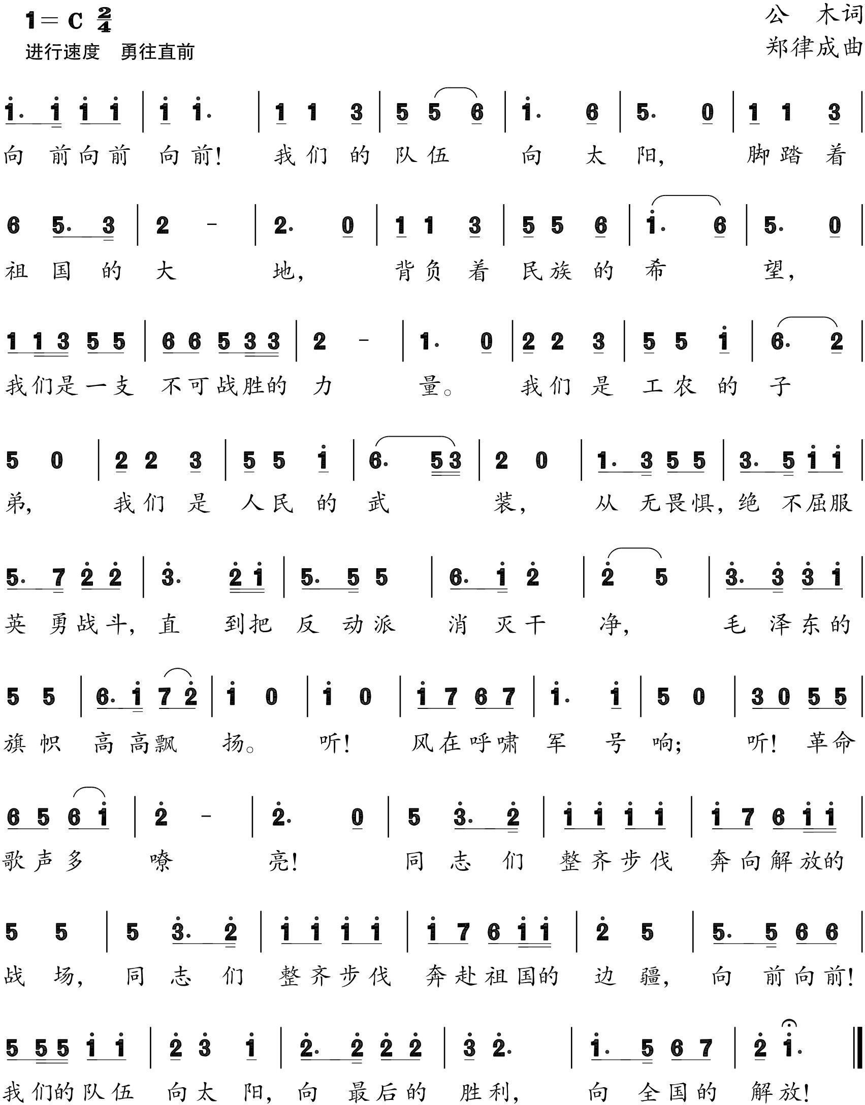 注:此歌作于1939年冬,原名《八路军进行曲》。在解放战争时期,歌词作了一些修改,称为《中国人民解放军进行曲》。1988年7月25日,经党中央军委决定将此曲定名为《中国人民解放军军歌》。 ZneIlyiqYXphuOL6r5lzk2GvU9sZ9piCQ3AypdsvudrhIuzL2IncZZlBd6a2SkPQ