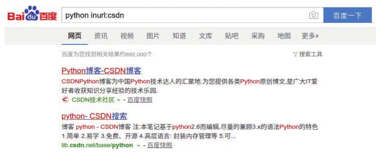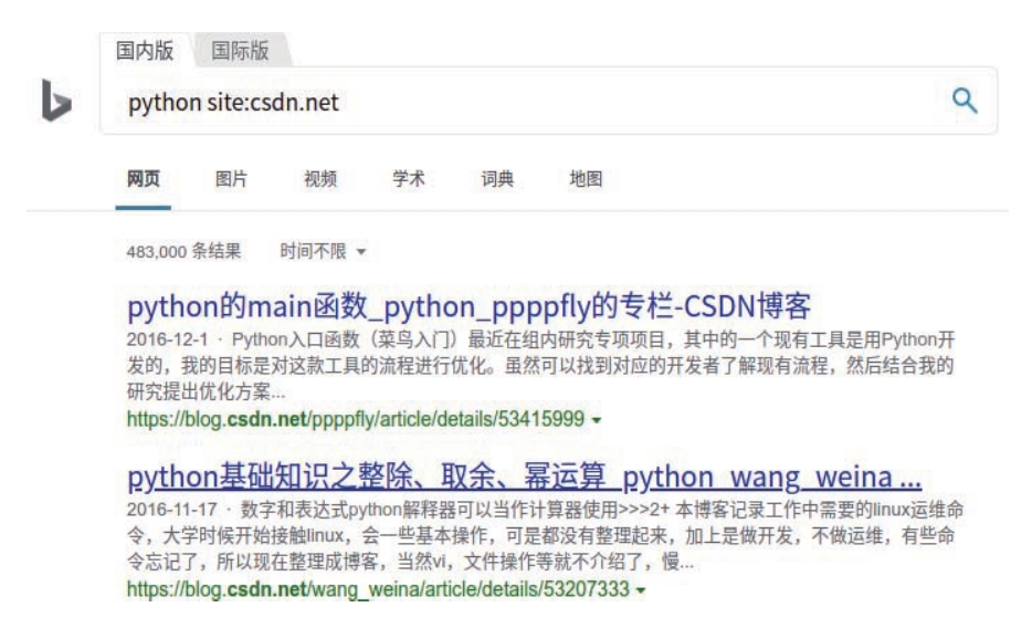 搜索结果就只会出现CSDN社区中关于Python的文章,如图1-2-1所示。